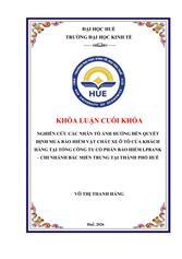 Nghiên cứu các nhân tố ảnh hưởng đến quyết định mua bảo hiểm vật chất xe ô tô của khách hàng tại Tổng Công ty Cổ phần Bảo hiểm LPBank – Chi nhánh Bắc Miền Trung tại Thành phố Huế /