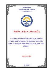 Các yếu tố ảnh hưởng đến sự hài lòng của du khách nội địa về dịch vụ Tour của Công ty Proud Vietnam Travel Trụ sở Huế /