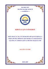 Phân tích các yếu tố ảnh hưởng đến quyết định lựa chọn chương trình du lịch nội địa của khách hàng tại công ty TNHH Du lịch và Thương mại Quân Thư /